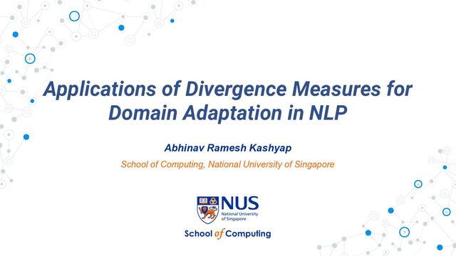 Abhinav Ramesh Kashyap is a fourth-year Ph.D. student advised by Prof Min-Yen Kan. His research is on Natural Language Processing. Specifically, he focuses on making NLP models robust under different domains, also called Domain Adaptation. He is also interested in Scholarly Document Processing which helps extract information from scholarly articles.
