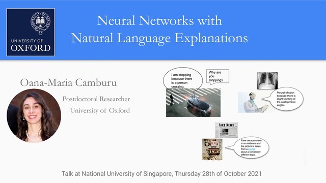 In order for machine learning to garner widespread public adoption, models must be able to provide human-understandable and robust explanations for their decisions. In this talk, we will focus on the emerging direction of building neural networks that learn from natural language explanations at training time and generate such explanations at testing time. We will see an extension of the large Stanford Natural Language Inference (SNLI) dataset with an additional layer of human-written natural language explanations for the entailment relations, called e-SNLI. We will see different types of architectures that incorporate these explanations into their training process and generate them at testing time. We will further see a similar approach for vision-language models, where we introduce e-SNLI-VE, a large dataset of visual-textual entailment with natural language explanations. We will also see e-ViL, a benchmark for natural language explanations in vision-language tasks, and e-UG, the current SOTA model for natural language explanation generation on such tasks. These large datasets of explanations open up a range of research directions for using natural language explanations both for improving models and for asserting their trust. However, models trained on such datasets may nonetheless generate inconsistent explanations. An adversarial framework for sanity checking models over generating such inconsistencies will be presented.