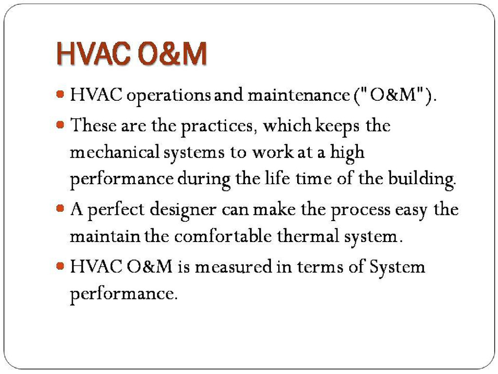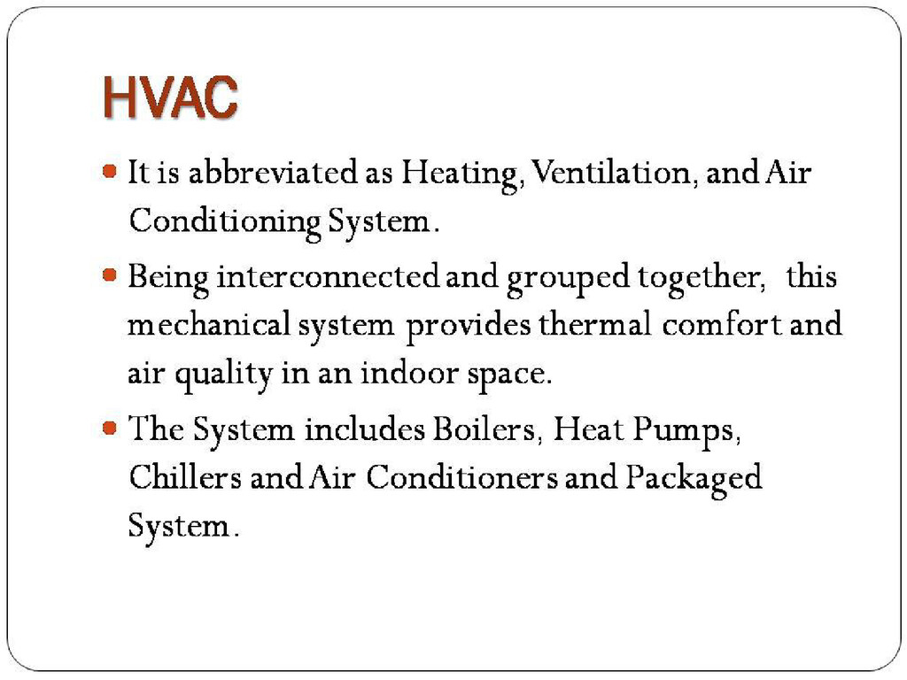 Necessary Information about HVAC for the building construction and its operation and maintenance.
