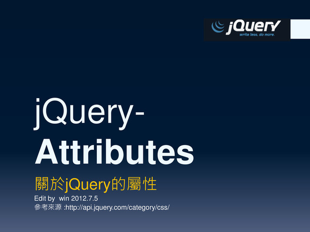 properties such as checked, disabled, or selected. This will remove the property completely and, once removed, cannot be added again to element. Use.prop() to set these properties to false instead. 注意: 請不要用removeProp( )這個方去移除原生的 屬性,ex: checked , disabled, selected,他 會完全的移除這些屬性,一旦移除了,就不 能再被指派使用在元素中。改用prop( )方法 將這些property設定為false