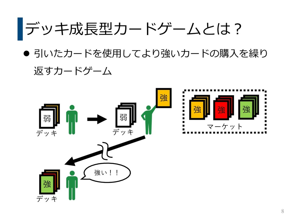 弱 デッキ 少し強く なった ⚫ 引いたカードを使用してより強いカードの購入を繰り 返すカードゲーム デッキ成長型カードゲームとは?