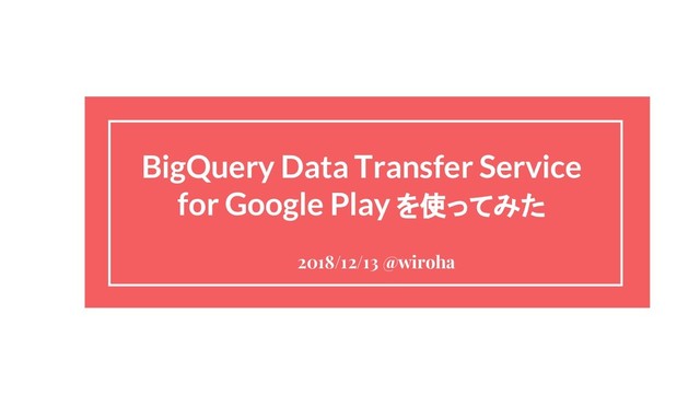 BigQuery Data Transfer Service for Google Play を使ってみた 2018/12/13 @wiroha