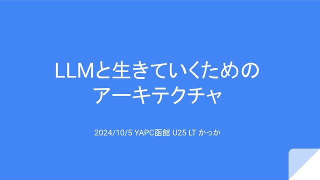 LLMと生きていくための アーキテクチャ 2024/10/5 YAPC函館 U25 LT かっか