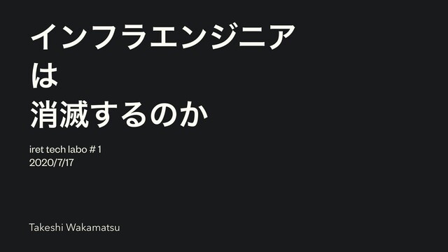 ΠϯϑϥΤϯδχΞ ফ໓͢Δͷ͔ iret tech labo # 1 2020/7/17 Takeshi