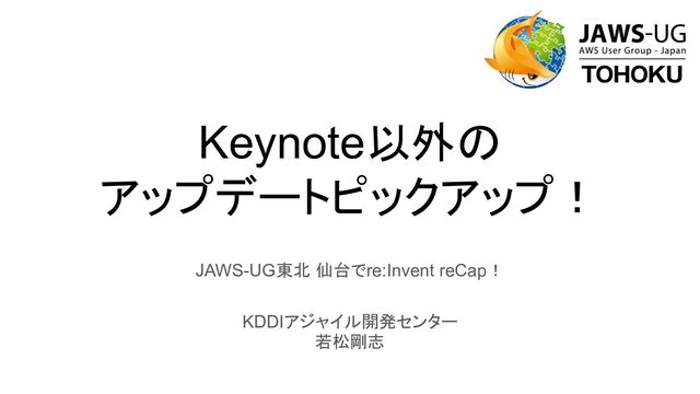 Keynote以外の アップデートピックアップ! JAWS-UG東北 仙台でre:Invent reCap! KDDIアジャイル開発センター 若松剛志