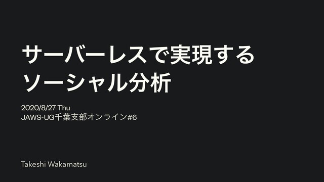 αʔόʔϨεͰ࣮ݱ͢Δ ιʔγϟϧੳ 2020/8/27 Thu JAWS-UGઍ༿ࢧ෦ΦϯϥΠϯ#6 Takeshi Wakamatsu