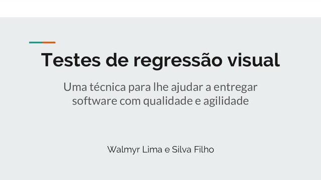 Slides da minha palestra sobre testes de regressão visual que foi ao ar pela XPConfBR 2018 Online em 20 de Maio de 2018.