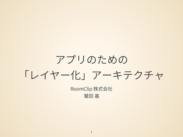 アプリのための 「レイヤー化」アーキテクチャ RoomClip 株式会社 鷲⽥ 基