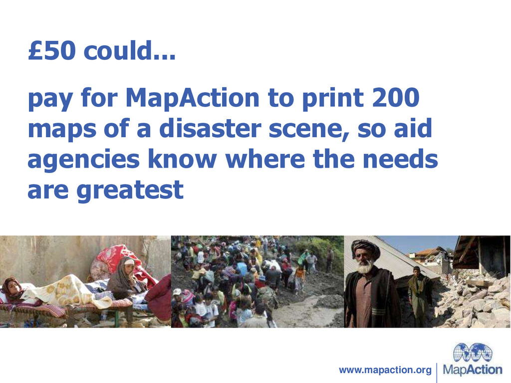 www.mapaction.org £50 could... pay for MapAction to print 200 maps