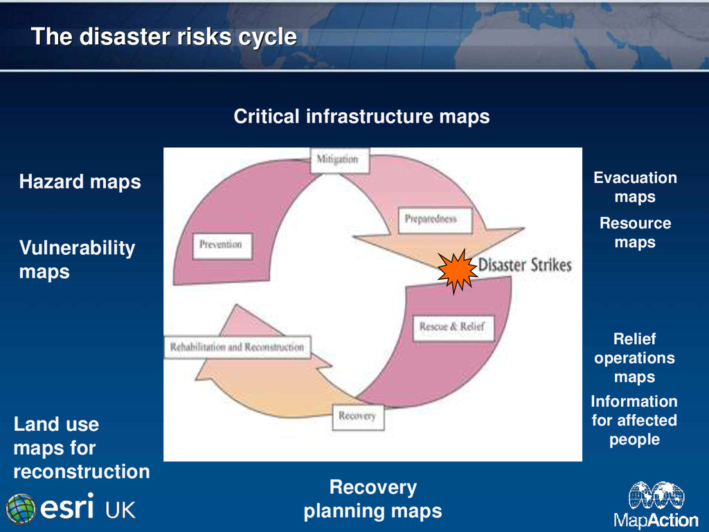 maps Critical infrastructure maps Evacuation maps Resource maps Relief operations maps Information for affected people Land use maps for reconstruction Recovery planning maps