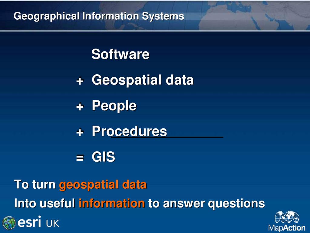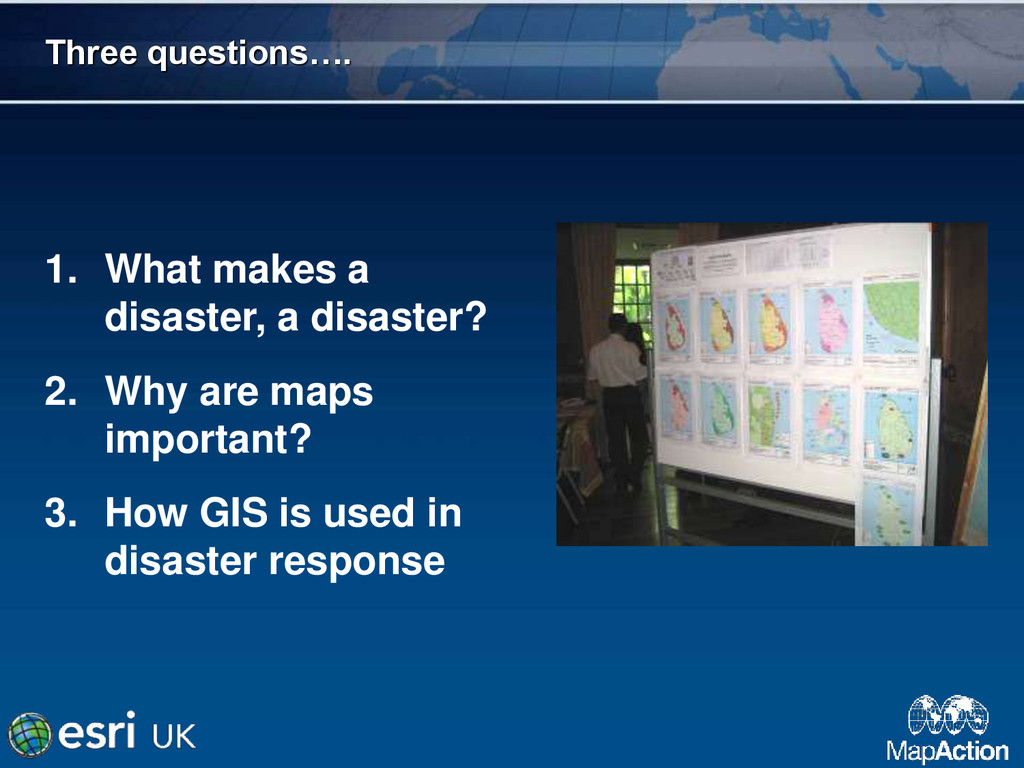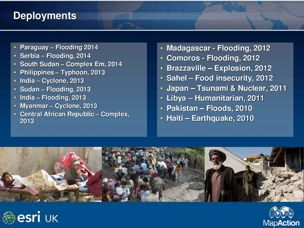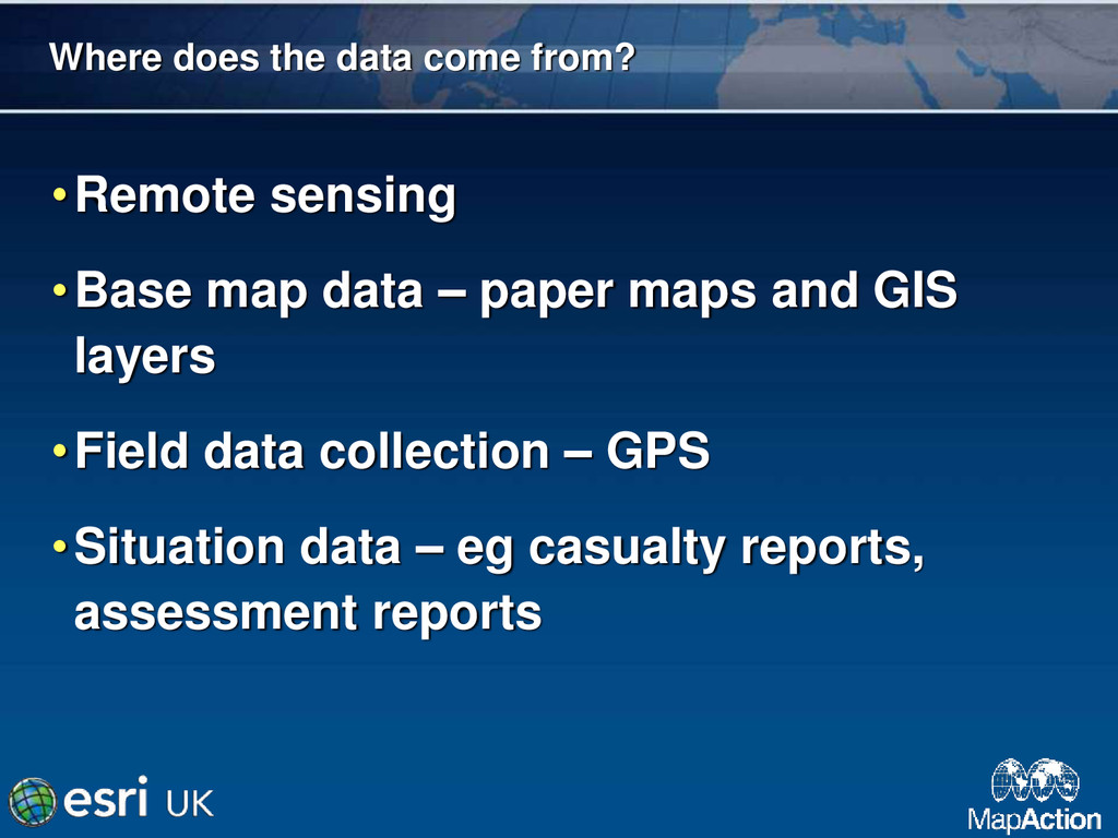 GIS is a powerful tool in providing a common operational picture during a humanitarian crisis. MapAction is the world's only deployable humanitarian GIS team.
