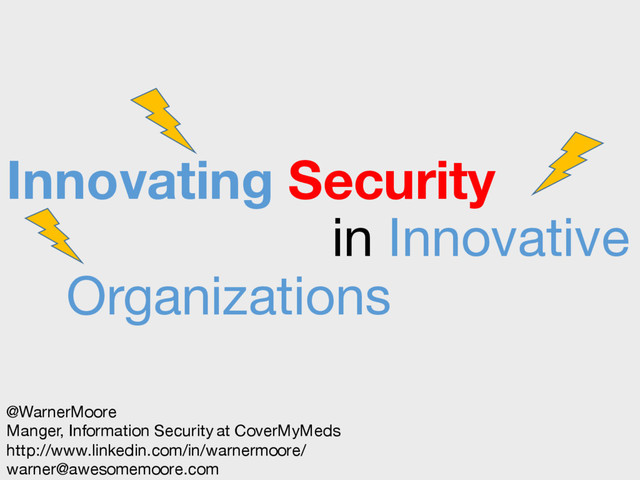 Do you need to secure your leading technology product and business? Are you struggling with aligning your security program to agile and devops? Organizations can be compliant and secure while remaining innovative. This presentation explores innovative processes and practices for evolving traditional security controls. With these techniques, you can securely enable the speed of change needed to disrupt in today's market place. Warner will explore alternative methods using real world examples for addressing security controls such as separation of duties, change control, and release management using automation and modern practices. Presentation given to Infosec Summit and ISACA Central Ohio in Columbus, Ohio. Video here: https://www.youtube.com/watch?v=xZvJH19zYV4
