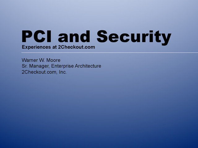 in security, high availability, and Open Source technologies. Been working with PCI since its inception. 2Checkout.com provides online payment services. We’re serious about security. So serious, we use it as a selling point.