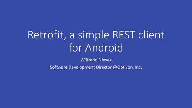 interface (is automatically added) • Pluggable JSON and XML converters, even create them yourself • Gson: com.squareup.retrofit:converter-gson Jackson: com.squareup.retrofit:converter-jackson Moshi: com.squareup.retrofit:converter-moshi Protobuf: com.squareup.retrofit:converter-protobuf Wire: com.squareup.retrofit:converter-wire Simple XML: com.squareup.retrofit:converter-simplexml