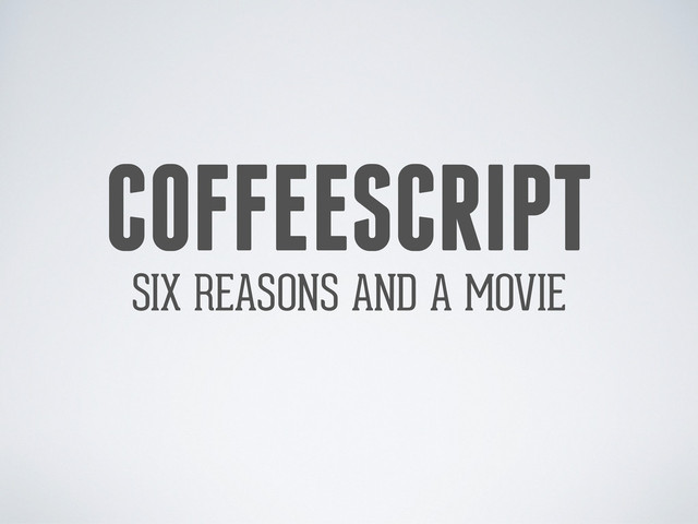 A short presentation on the benefits of using coffeescript, plus a movie recommendation (or two!). Presented at Barcamp Nashville 2012.