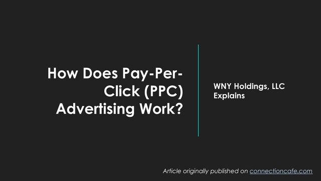 ads for a flat fee are gone. Businesses can now buy highly targeted online advertisements per user click. Pay-Per-Click (PPC) advertising provides a highly effective way to promote products and services online. Here, WNY Holdings discusses the basics of PPC advertising and how it works.