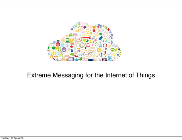 • Facebook is running MQTT on 600M mobiles and tablets • Is there a simple stream NodeJS based API for MQTT? • Myself and Tim Oxley are working on it. Tuesday, 13 August 13