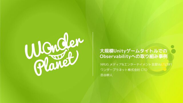 大規模Unityゲームタイトルでの Observabilityへの取り組み事例 NRUG メディア&エンターテイメント支部Vol.1LT#1 ワンダープラネット株式会社 CTO 吉谷幹人