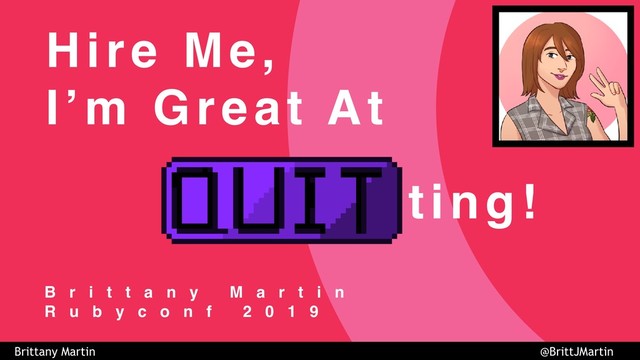 You have the right to be happy at work — why would we want it to be any other way? As our careers as Ruby developers flourish, amazing new opportunities will require you to quit a job that you may love or loathe. It's OK to quit. If you want to learn how to gracefully leave your job with a solid game plan, an educated successor, and without burning bridges, this talk is for you.