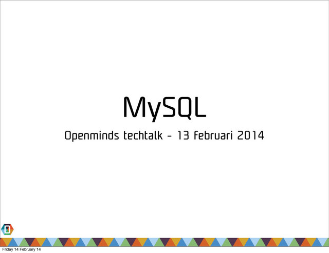 *************************** 1. row *************************** rows: 4188 Extra: Using where 1 row in set (0.00 sec) mysql> create index Name on City (Name); Query OK, 0 rows affected (0.04 sec) Records: 0 Duplicates: 0 Warnings: 0 mysql> explain select * from City where Name = "Gent"\G *************************** 1. row *************************** table: City type: ref possible_keys: Name key: Name key_len: 35 ref: const rows: 1 Extra: Using index condition 1 row in set (0.00 sec) Friday 14 February 14