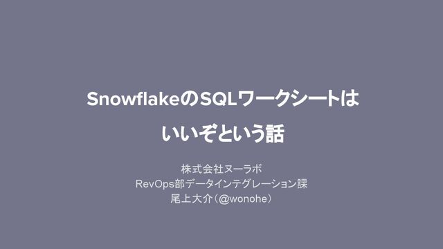 SnowflakeのSQLワークシートは いいぞという話 株式会社ヌーラボ RevOps部データインテグレーション課 尾上大介(@wonohe)