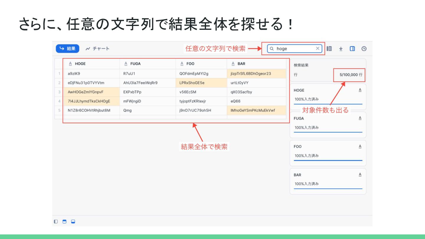 これSQLでやるのまあまあ面倒くさい 2. サンプルデータを見る → SELECT * FROM hoge_t LIMIT 100;