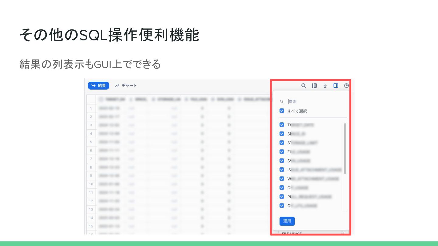 その他のSQL操作便利機能 結果の列表示もGUI上でできる