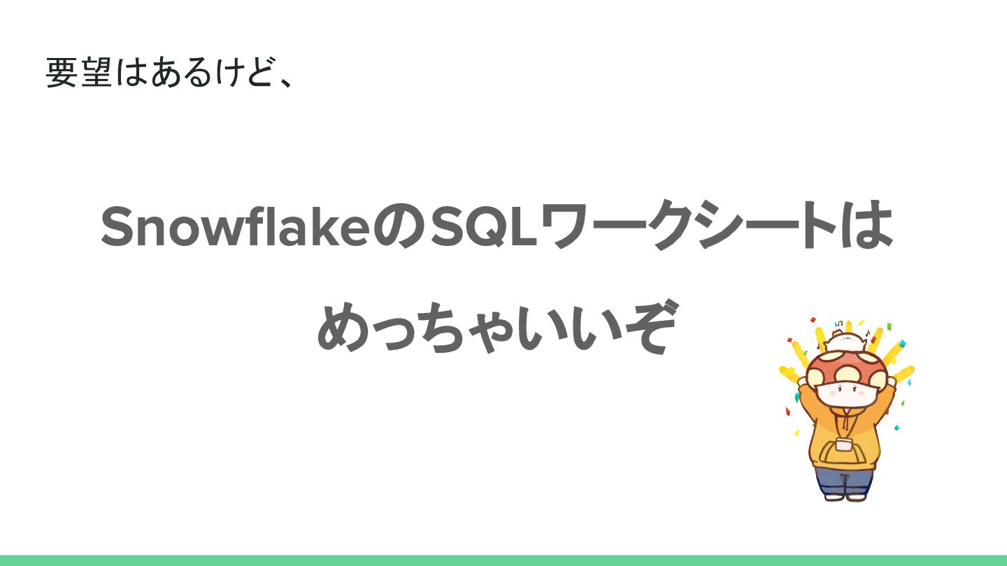 SnowflakeのSQLワークシートは めっちゃいいぞ 要望はあるけど、