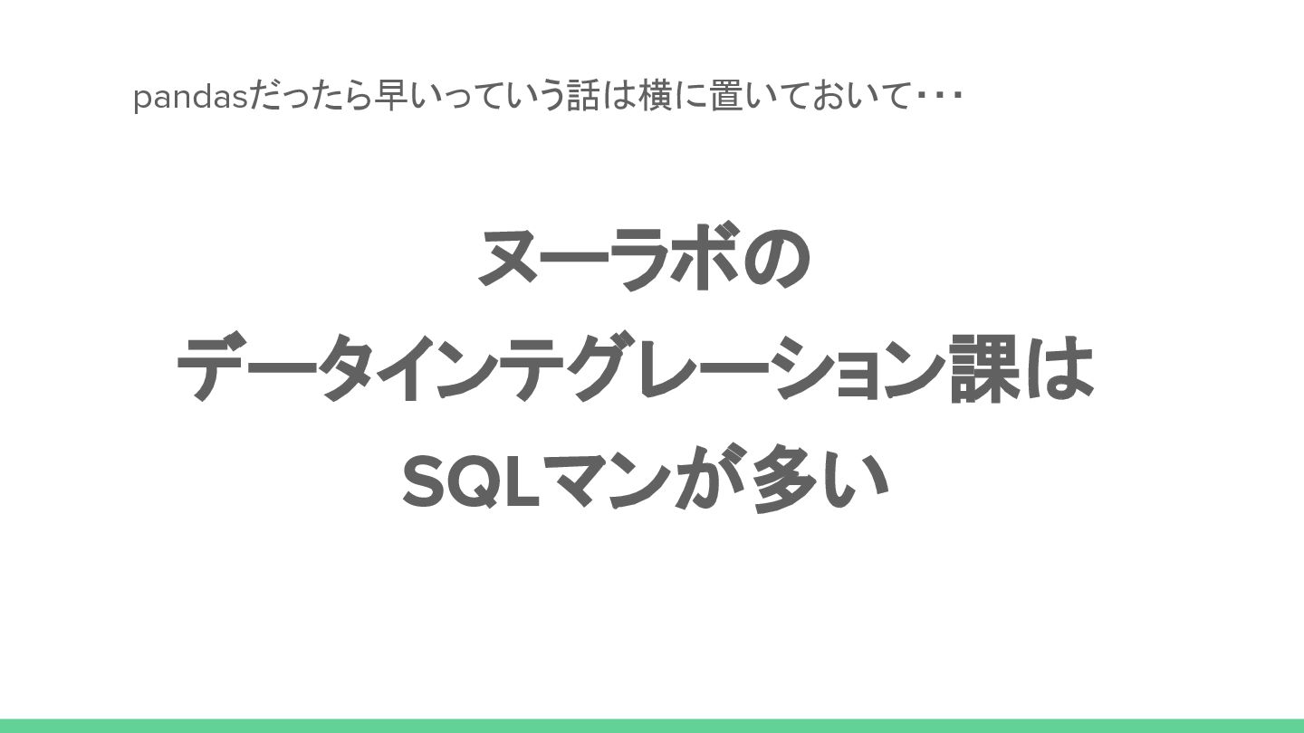 ヌーラボの データインテグレーション課は SQLマンが多い pandasだったら早いっていう話は横に置いておいて・・・