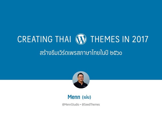 Creating Thai WordPress Themes in 2017 : สิ่งที่ต้องคำนึงในการสร้างธีมเวิร์ดเพรสภาษาไทยสำหรับปี 2017 ซึ่งจะเริ่มตั้งแต่ มีวิธีแบบไหนในการสร้างธีมบ้าง? (เริ่มจากศูนย์ หรือใช้ธีมคนอื่น?) จนถึงสิ่งที่ต้องคำนึงสำหรับภาษาไทย และผู้ใช้ไทย