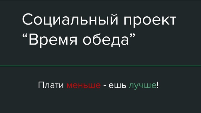 Социальный проект “Время обеда” Плати меньше - ешь лучше!