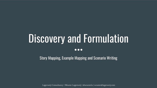 ahead • What feature will we Story Map together? • When? • Outcomes: ◦ Map ◦ Slices -> How small can we go? ◦ Stories ◦ Dependencies ◦ Plan: Example Mapping and Formulation sessions for stories in first slice