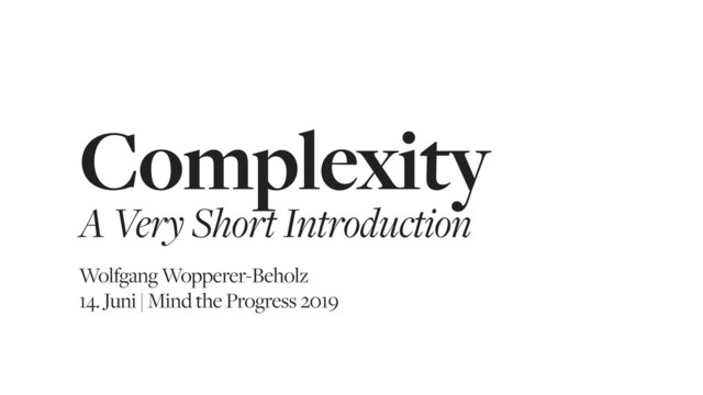 What is complexity? When and why does it arise? How are complex systems different from complicated ones? A simple introduction to the basics, plus a short conference wrap-up. (Talk at Mind the Progress, June 2019)