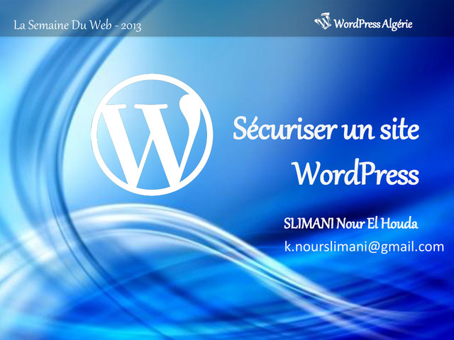 de la Base de données • Export articles et pages en XML • Optimisation et réparation de la Base de données • Sauvegarde des fichiers et répertoires • Backup aux formats zip, tar, tar.gz, tar.bz2 • Sauvegarde envoyée sur votre serveur FTP, Amazon S3, Google Storage, Microsoft Azure, RackSpaceCloud, Dropbox, SugarSync... • Envoi des logs et backups sur votre email WordPress Algérie La Semaine Du Web - 2013