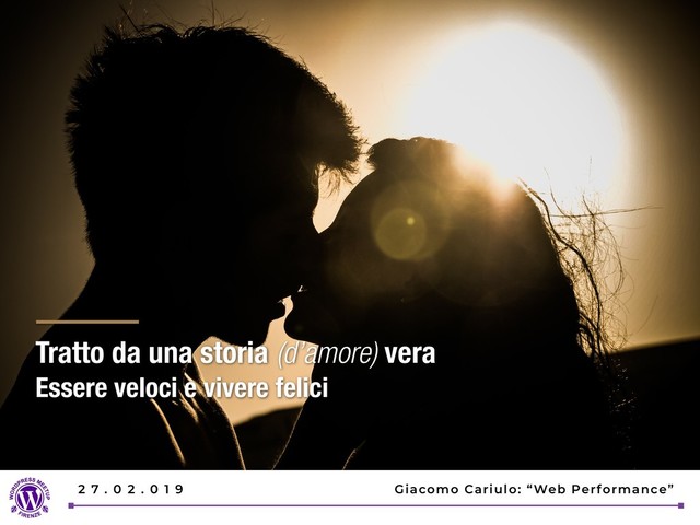 Restiamo in contatto GRAZIE Ci vediamo al prossimo Meetup 05-06 Aprile WordCamp Torino 2 7 . 0 2 . 0 1 9 Giacomo Cariulo: “Web Performance” 17-18 Maggio WordCamp Bari