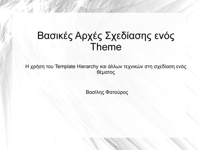 {get_header(), get_footer()}. 2. Διαφορετικά Widget Areas και Menus, {get_sidebar(), wp_nav_menu()}. 3. H χρήση sidebar με άλλες δυνατότητες όπως διαφημίσεις {get_sidebar()}. 4. Χρήση carousel areas. 5. Διαφορετικά είδη δεδομένων (custom post types) και κατηγoριοποιήσεων (custom taxonomy).