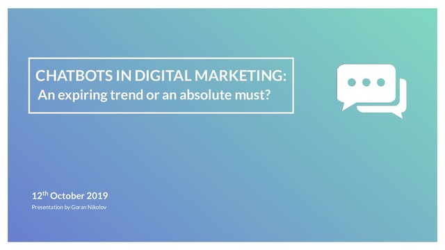 Chatbots: in Digital Marketing: An expiring trend or an absolute must? [EN] - Goran Nikolov