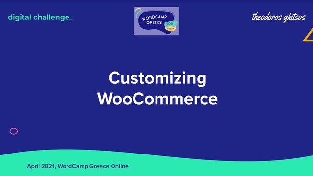 Η παρουσίαση εξηγεί σύντομα τον τρόπο λειτουργίας του WooCommerce και πώς μπορείς να επέμβεις στις διαδικασίες του. Οι 3 κύριες θεματικές θα είναι πώς και πού να γράψεις τον custom κώδικά σου, πώς να χρησιμοποιήσεις τα hooks και τα filters και πώς να κάνεις ένα template override. Απευθύνεται στον μέσο χρήστη του WP/WC, δηλαδή κυρίως σε άτομα που δεν έχουν πολλή εμπειρία με customizations και θα ήθελαν να ασχοληθούν, ή το κάνουν “στο περίπου”!
