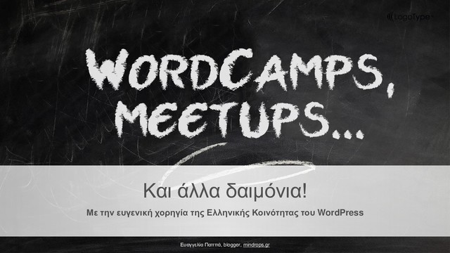 ξεχάσουμε τίποτε, θα βρείτε όλο μας το υλικό στον επίσημο λογαριασμό της Κοινότητας στο flickr. Οι παρουσιάσεις κάθε συνάντησης και τοπικού WordCamp είναι προσβάσιμες από το λογαριασμό της Κοινότητας στο Speakerdeck, ώστε ακόμη κι αν το έχασες να μπορείς να διαβάσεις τι ειπώθηκε, καθώς επίσης και ως σημείωση για κάτι που βρίσκεις πολύ ενδιαφέρον κι επιθυμείς να μπορείς να ανατρέξεις αν χρειαστεί.
