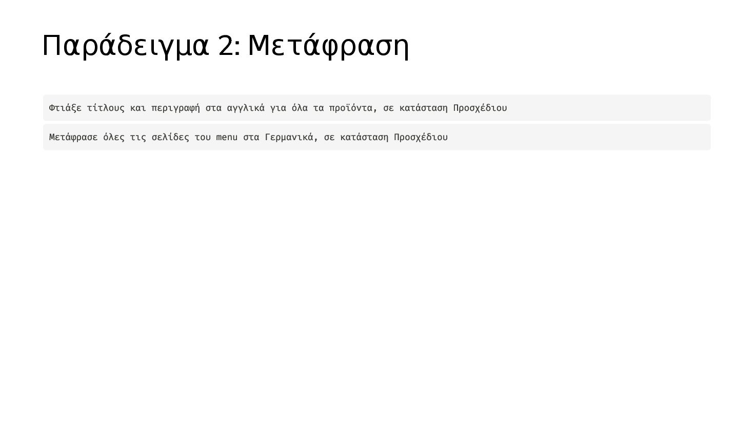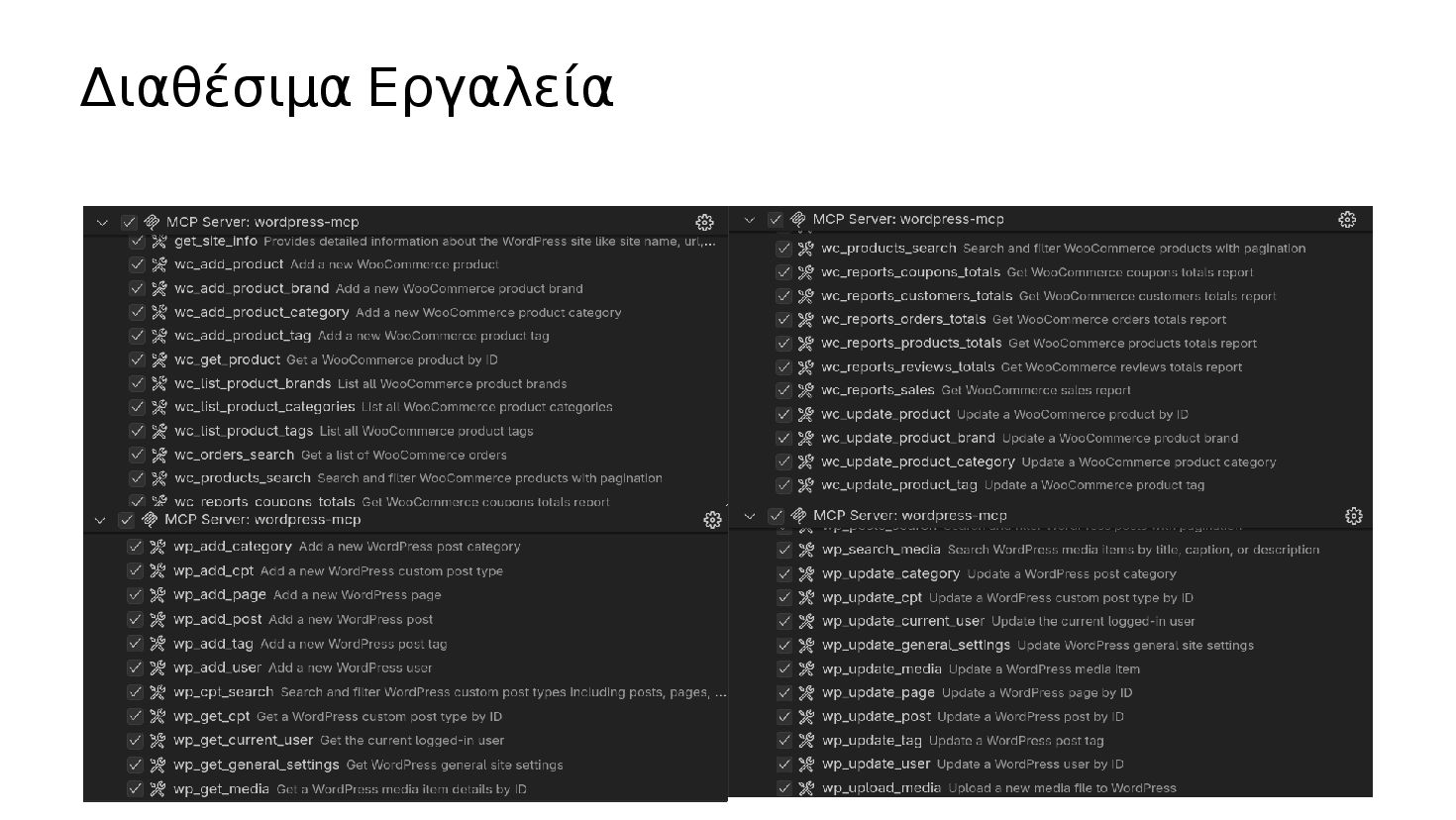 διαφορετικούς παρόχους και μοντέλα Content Assistant - Δυνατοτητες για γράψιμο από ΑΙ μέσα στον Gutenberg Site Agent - Διαχείριση σελίδας με φυσική γλώσσα Workflow Automation Δημιουργία τίτλων