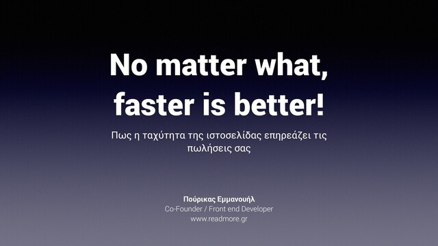 δηλώσει πως η ταχύτητα ιστοσελίδας επηρεάζει την κατάταξη στα οργανικά αποτελέσματα • Το 40% των επισκεπτών θα εγκαταλείψει την ιστοσελίδα σας αν κάνει πάνω από 3 δευτερόλεπτα να ανοίξει • Μια γρήγορη ιστοσελίδα κάνει τους επισκέπτες χαρούμενους :)