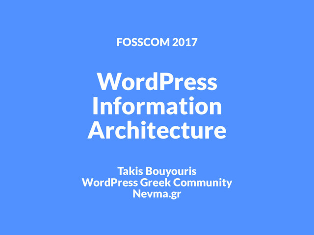 WordPress Information Architecture - Takis Bouyouris, FOSSCOM2017