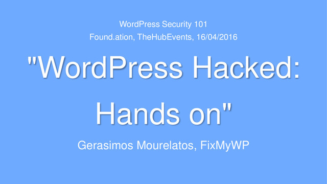 WordPress Security 101 Found.ation, TheHubEvents, 16/04/2016 "WordPress Hacked: Hands on"