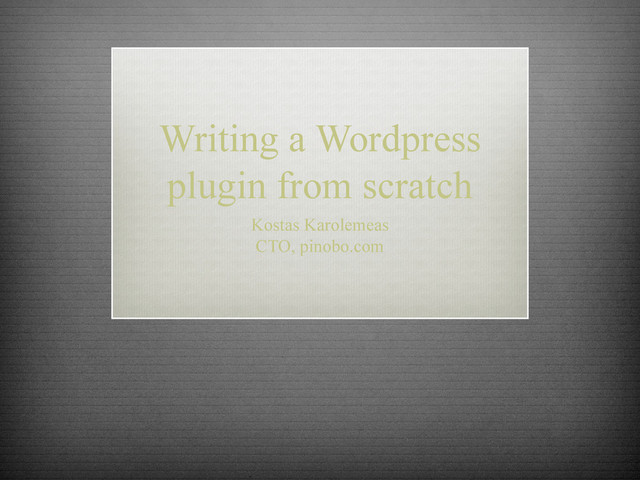 are not actively developed and have bugs They have dependencies’ conflicts They do not do the job Sometimes you keep repeating the same code in most of your project. Sometimes you have some great functionality that you want to share with others or even make money out of it. Writing a wordpress plugin from scratch Kostas Karolemeas