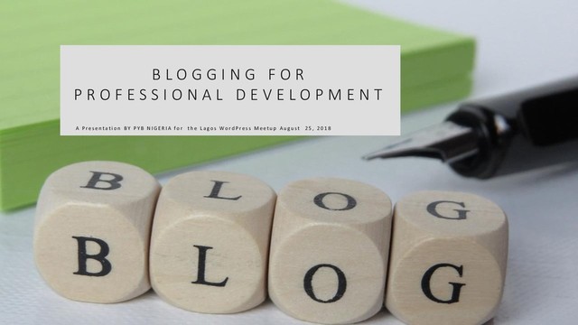 i o n B Y P Y B N I G E R I A f o r t h e L a g o s W o r d P r e s s M e e t u p A u g u s t 2 5 , 2 0 1 8 B L O G G I N G F O R P R O F E S S I O N A L D E V E L O P M E N T