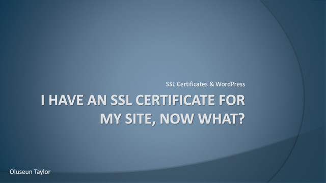 I Have An SSL Certificate For My Site..so What? Presented by Oluseun Taylor