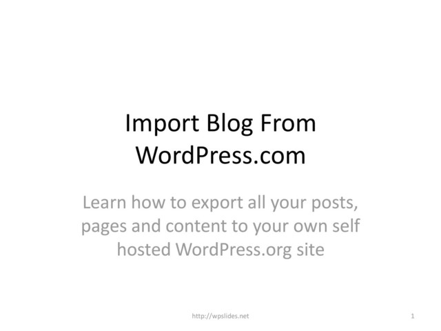 Learn how to import your old posts, images and everything else from WordPress.com, Blogger & other major blogging platforms to your WordPress.org self hosted site.