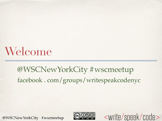 Workshop given to the NYC chapter of Write/Speak/Code: http://www.meetup.com/Write-Speak-Code-NYC/ and slides published with a Creative Commons Attribution-NonCommercial-ShareAlike license: http://creativecommons.org/licenses/by-nc-sa/4.0/