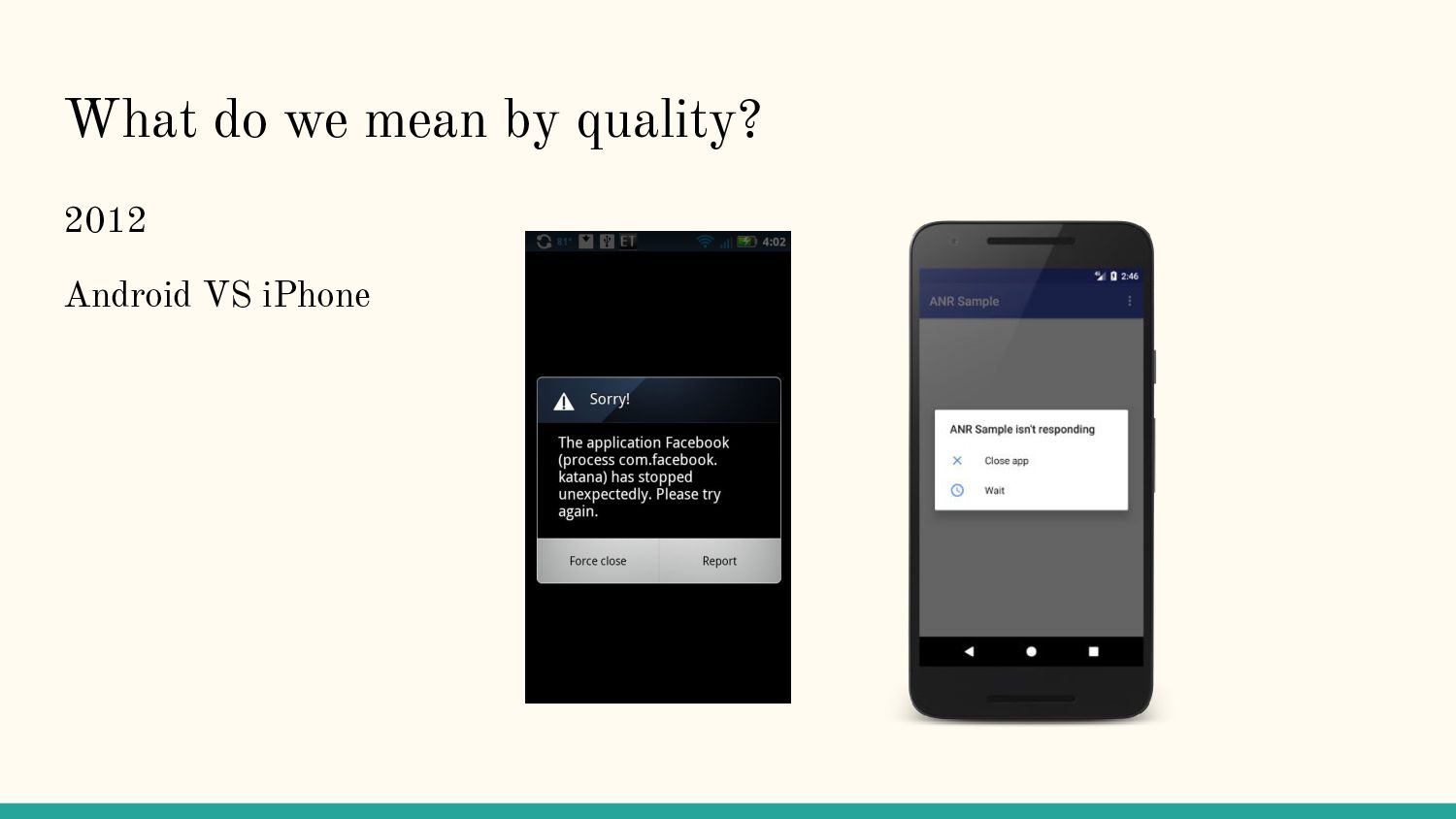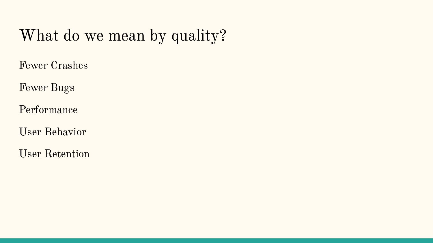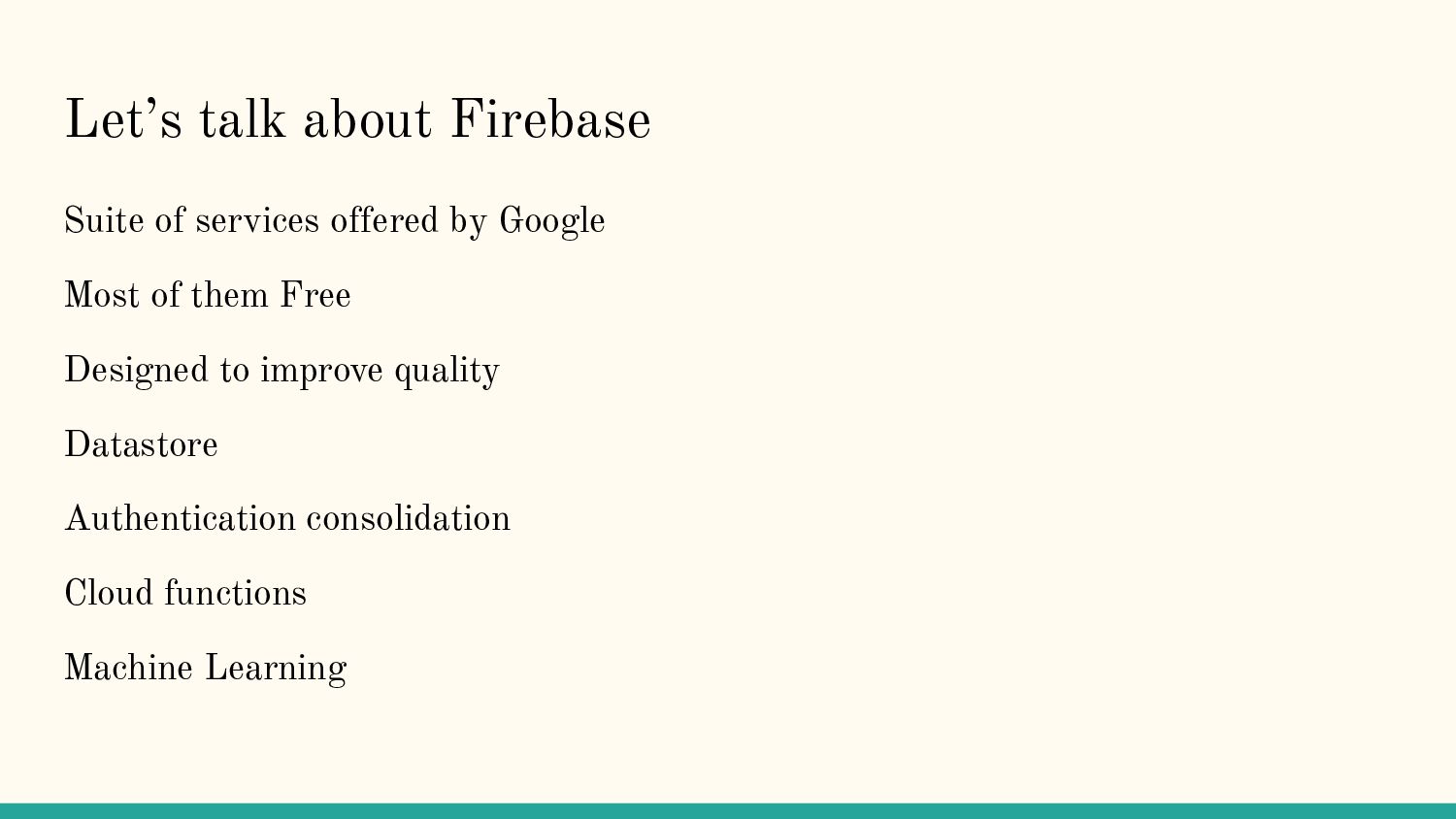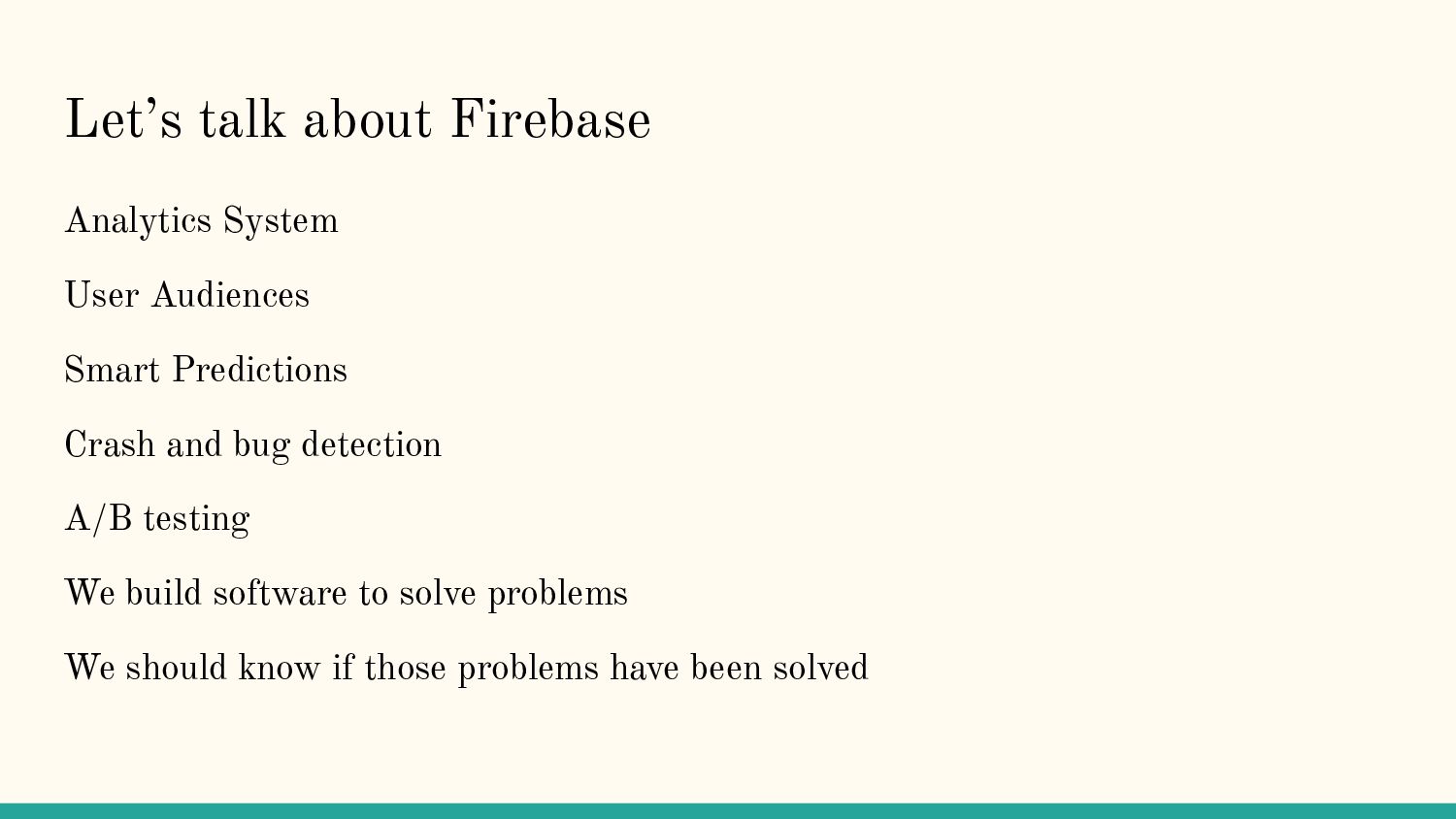 In this talk, we discussed how Firebase can be used to measure and improve quality in your application. Much of the talk will be shared on Youtube when processed by AndroidWorldwide.