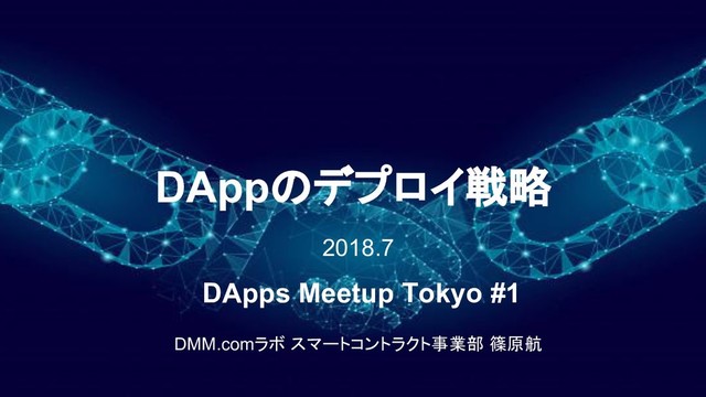 DAppのデプロイ戦略 DApps Meetup Tokyo #1 2018.7 DMM.comラボ スマートコントラクト事業部 篠原航